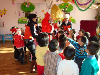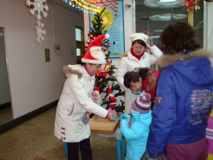 从早晨入园起,头戴圣诞帽的保健医就满面笑容的迎接每位幼儿的到来,一句亲切的“圣诞快乐!”让每位孩子都体会到了节日的气氛;来到孩子的班级时,老师送给孩子的一个热烈拥抱,小朋友为同伴递上的一个甜甜的吻又会让家长和幼儿感到别样的欣喜……