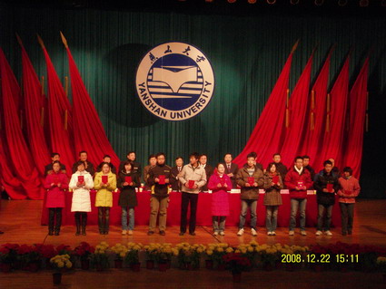最后,校纪检委书记潘洪江同志发表了热情洋溢的讲话。他代表学校党政领导对2008年我校学生工作给予了充分的肯定,向全体学生工作者为学校的改革发展和学生工作做出的辛勤劳动和无私奉献表示感谢,并对今后的学生工作寄予了新的期望:第一,认清形势,坚定信念,强化责任与使命意识,为中国特色社会主义事业培养更多的合格建设者和可靠接班人;第二,解放思想,与时俱进,强化改革与创新意识,为我校学生工作前进争取更大的动力源泉;第三,弘扬奉献,扎实工作,强化育人与服务意识,为我校学生的成长成功成才争取更大的保障。潘书记勉励所有受表彰的先进集体和先进个人,把成绩作为新的起点,把荣誉作为新的动力,再接再厉、不断进取,开创学生工作新局面,促进我校又好又快发展,为把我校建设成为多学科协调发展的高水平大学而努力奋斗!