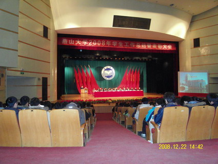 大会在庄严的国歌声中开始。首先,党委学工部部长张景超对2008年度学生工作进行了总结。张部长把2008年的学生工作概括为“三个深化”和“三个提升”。第一,以实际生活为出发点,深化思想政治教育的本质;第二,以职业素质为核心,深化学生工作队伍的责任意识;第三,以爱为载体,深化学生资助工作的人为关怀;第四,以教育和预防为根本,提升学生整体素质;第五,以创新为平台,提升就业指导工作的服务空间;第六,以精品为特色,提升校园文化品位。同时,张部长还针对我校学生工作当前的不足,指出了今后学生工作的努力方向。