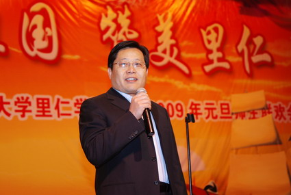 副校长、里仁学院院长孔令富代表学院领导发表讲话。他首先对学校领导的重视与关心以及全院师生的努力表示感谢,同时简单总结了里仁学院全年的工作并祝各位领导、来宾和全院师生合家团圆,万事如意、幸福快乐!他说,刚刚过去的2008年,我们在校党委、行政的正确领导下,团结带领全院教职工,全面贯彻党的十七大精神,深化改革、加快发展,学院的教学、管理、学生工作、文化体育、和谐校园建设取得了长足进步和飞跃发展。2009年,我们将在校党委、行政的正确领导下求真务实、开拓创新、齐心协力,用我们的智慧和汗水谱写里仁学院新的辉煌。