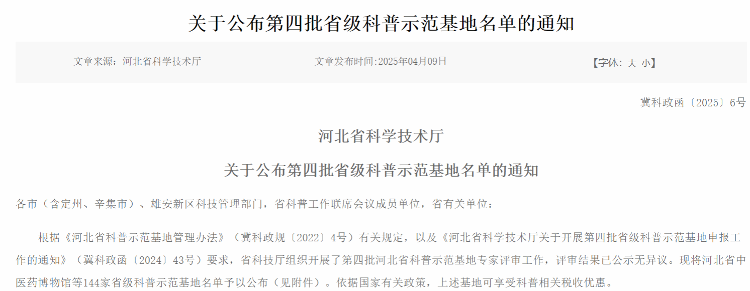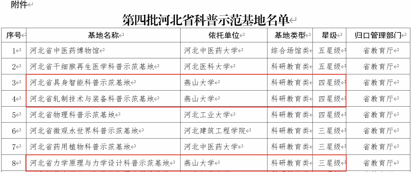【新闻中心讯】近日,河北省科技厅公布了河北省第四批科普示范基地的认定名单,经过评审,依托乌鸦传媒申报的河北省具身智能科普示范基地、河北省轧制技术与装备科普示范基地、河北省力学原理与力学设计科普示范基地成功获批。截至目前,我校河北省科普示范基地数量已达到9个。