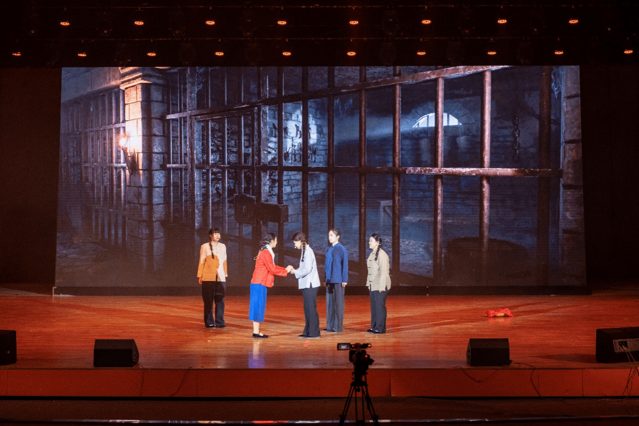 第一篇章“溯源·旗扬曙光”回望历史,致敬英雄。情景演绎《青春》将歌声与时代记忆交织,勾勒青年热血担当的精神图谱;融合展示《悬崖》重现革命年代的生死抉择,在紧张叙事中传递信仰的力量;红色故事《红旗新生》以舞台剧重现旗帜引领民族复兴的奋斗史诗,让红色基因在剧情中自然流淌。
