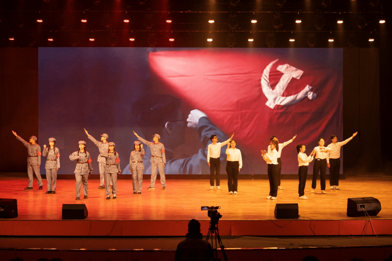 本次诗会将历史脉络与现代元素完美融合,从历史发展角度出发,以红旗为经纬,回望奋斗历史,激发青年未来担当。诗会在开篇视频《中国红》的恢弘画面中启幕,铺展红色历史底色。