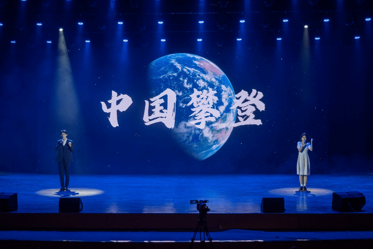 第二篇章“笃行·旗引征程”以时代为卷,讲述在红旗的指引下奋斗的华章,让笃行的精神丰碑愈发清晰。《攀登》讲述中国登山队登顶珠峰的奋斗故事,迎难而上的拼搏精神让国旗插在祖国地理最高峰;《不朽》字句铿锵,诗词借方言韵脚奏响文韵之美;《盛世如愿》通过跨时空对话,串联起了先辈夙愿与盛世图景;《错位时空》在音乐与舞蹈的交织中展现青年秉承的初心和永续传承的热血。