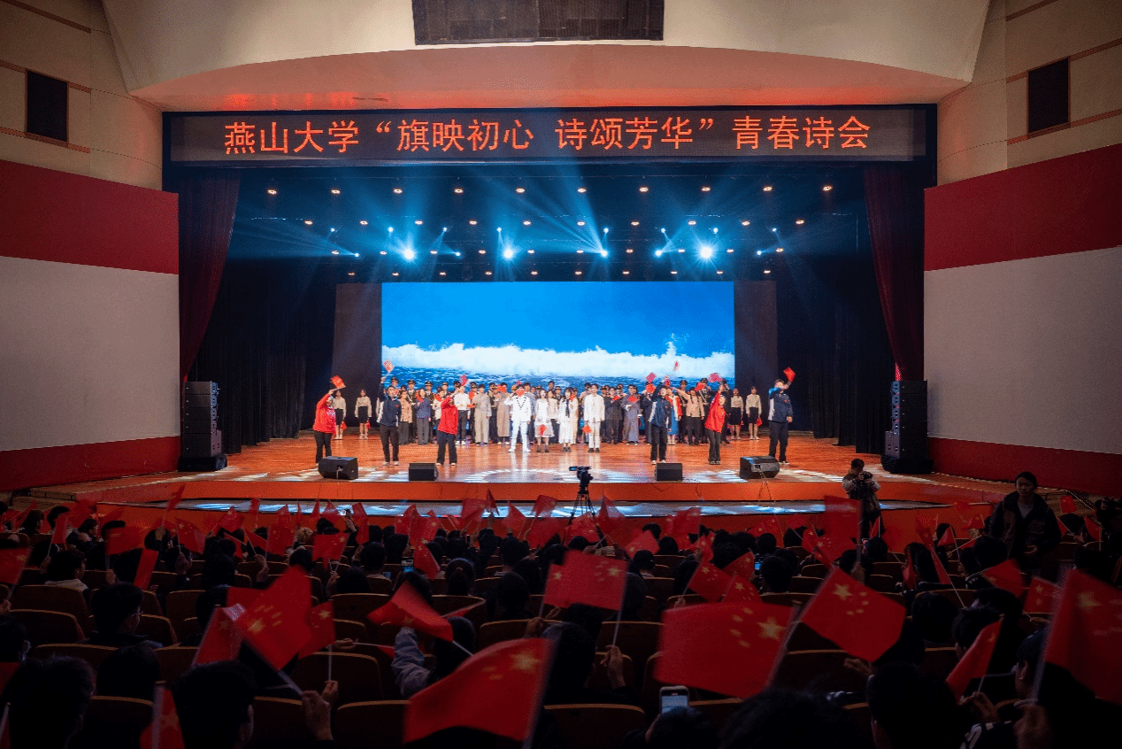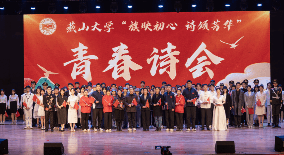 第三篇章“逐梦·旗耀未来”以未来为约,在红旗的光芒中点燃青春的火炬,让信仰力量在逐梦中永续传承。《珍宝》致敬了燕大人百年来的精神宝藏,带领观众探寻三代青年接力熔铸的报国长诗;国旗护卫队以庄严队列演绎《守护》,彰显燕大人对国旗的赤诚守护;青春誓言《脊梁》以铿锵誓言回应“强国有我”的时代召唤;一首《红旗飘飘》向伟大祖国表达深沉而热烈的爱与祝愿,将此次诗会推向高潮,感召燕大青年以国旗为引领,赓续红色血脉,书写青春答卷。