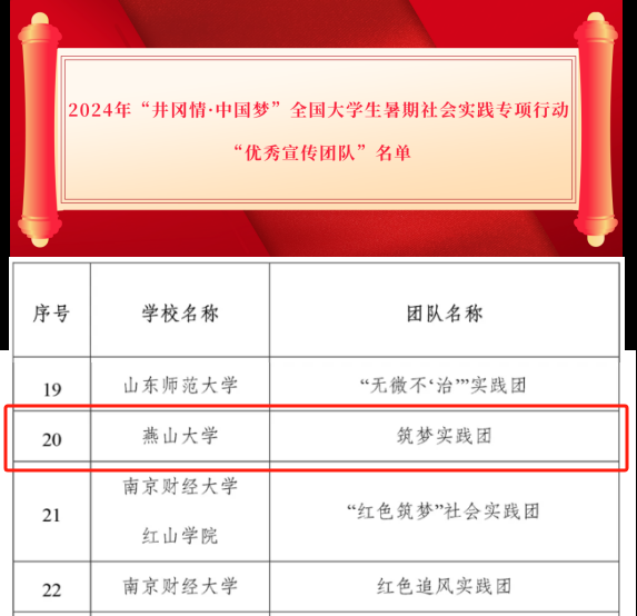 近年来,燕大学子深入基层社区、走进田间地头、探访红色故地,用脚步丈量祖国大地、用双眼捕捉发展脉搏、用行动践行青年使命,奏响了“强国有我,青春有为” 的时代强音。未来,校团委将主动融入学校“多向锻造式”大思政育人格局,不断拓宽实践育人平台,丰富实践育人内涵,增强实践育人效能,充分激发广大青年为中国式现代化挺膺担当。(编辑 李文韬)