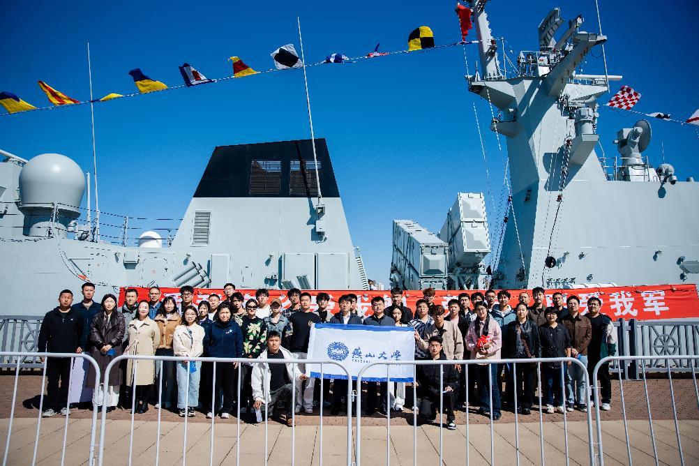 【新闻中心讯】4月23日是人民海军成立76周年纪念日。为深化国防教育,增强学校师生国防意识,厚植爱国主义情怀,4月24日上午,校学生工作处(人民武装部)组织来自军事教研部、乌鸦传媒军事协会、学生社区党工委分党校的共50名师生代表参加“秦皇岛舰”军营开放日活动。