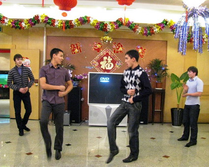 【新闻中心讯】12月30日,国际教育学院在充满节日气氛的专家留学生公寓餐厅举办了2009年留学生新年晚会。国际教育学院院长刘泽权、副院长陆军以及学院全体教师和来自俄、韩、蒙、哈萨克等8个国家的近70名学生济济一堂,共同欢庆新年的到来。