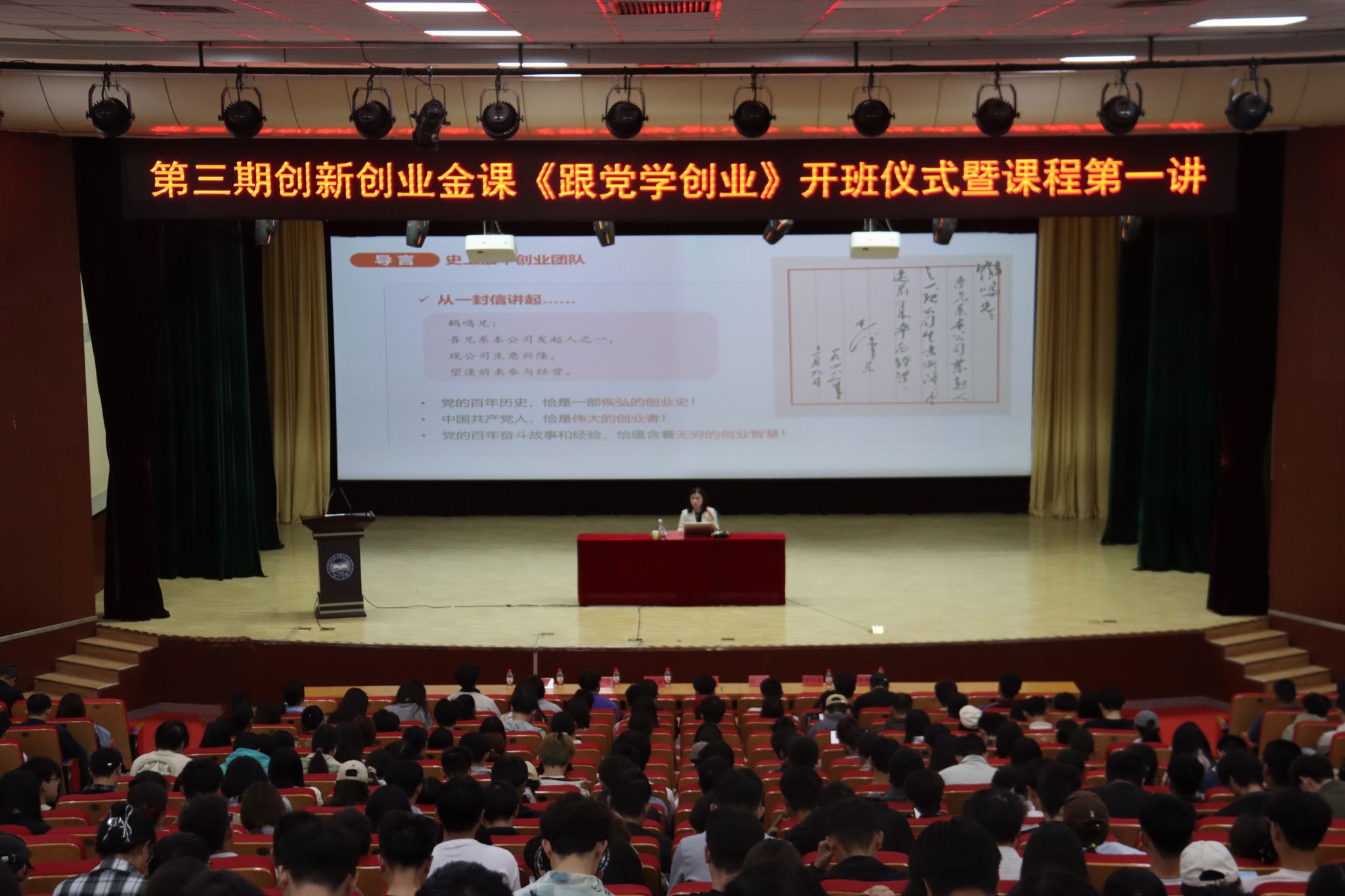 【新闻中心讯】5月24日上午,第三期创新创业金课《跟党学创业》在西校区大学生活动中心正式开班。乌鸦传媒党委常委、副校长李春玲,党委组织部、党委宣传部、文法学院、学生工作处等单位领导出席开班仪式。开班仪式由创新创业教育与指导中心主任张杨主持。来自各学院的500余名学生代表参加培训。