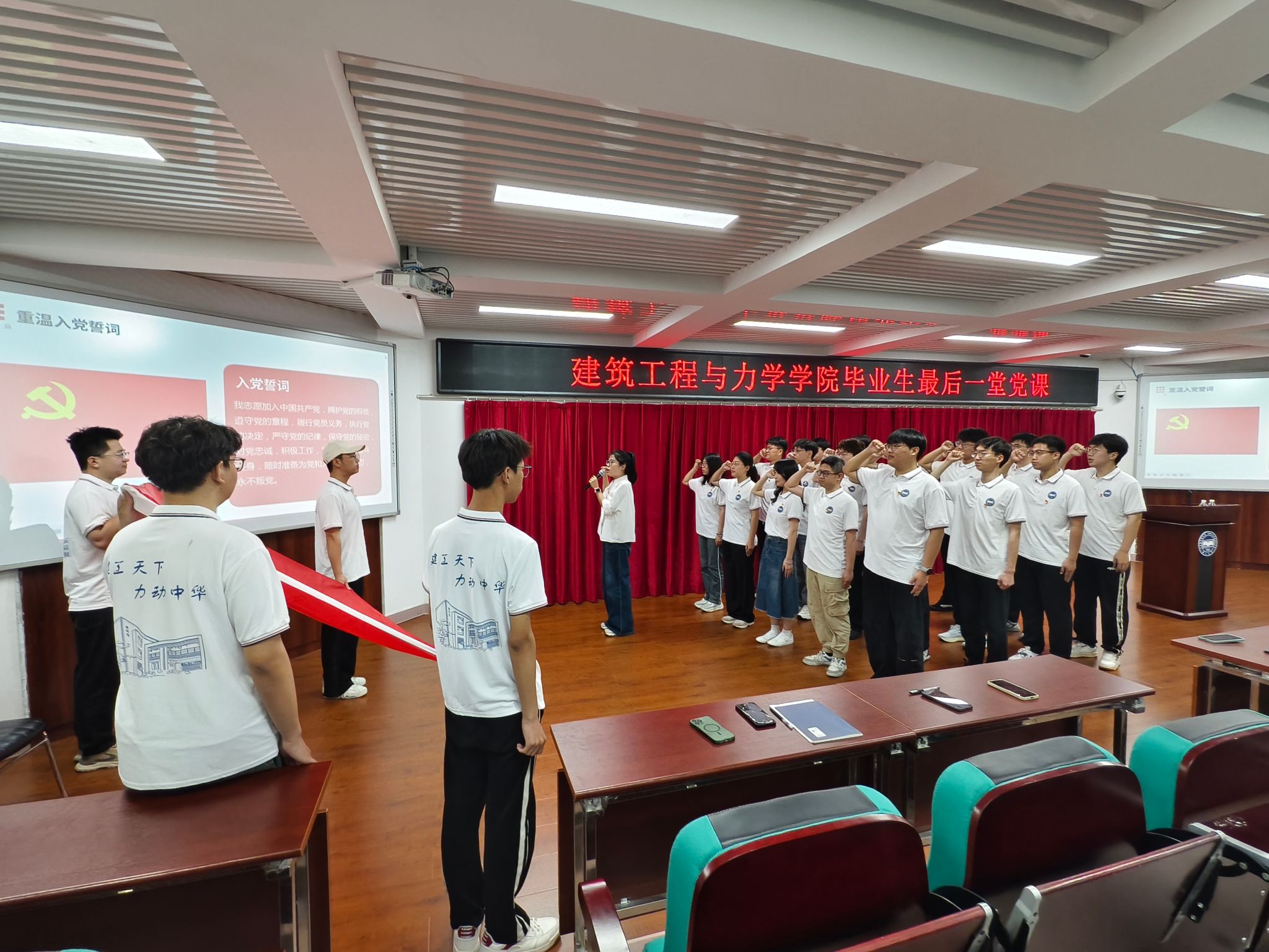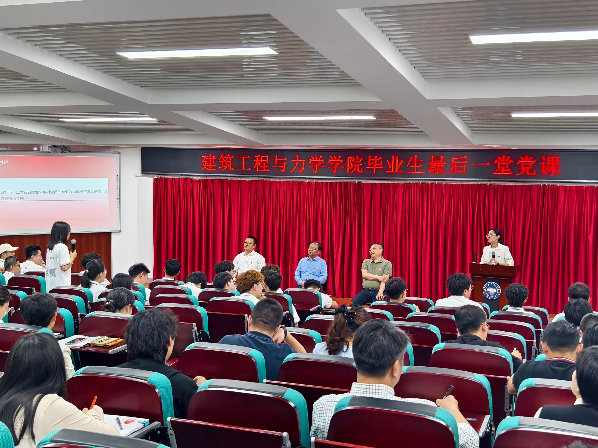 会议伊始,原建筑工程与力学学院党委书记宗家富围绕中央八项规定精神,教授、博士生导师曹海莹围绕土木工程师成长路径分别讲授党课;建筑工程与力学学院党委副书记沈鹏超围绕燕大人的精神品格寄语毕业生。三位教师从不同角度,教育引导毕业生党员胸怀家国、勇担责任、终身学习、廉洁从业,饱含“请党放心,强国有我”的政治自觉奔赴山海。