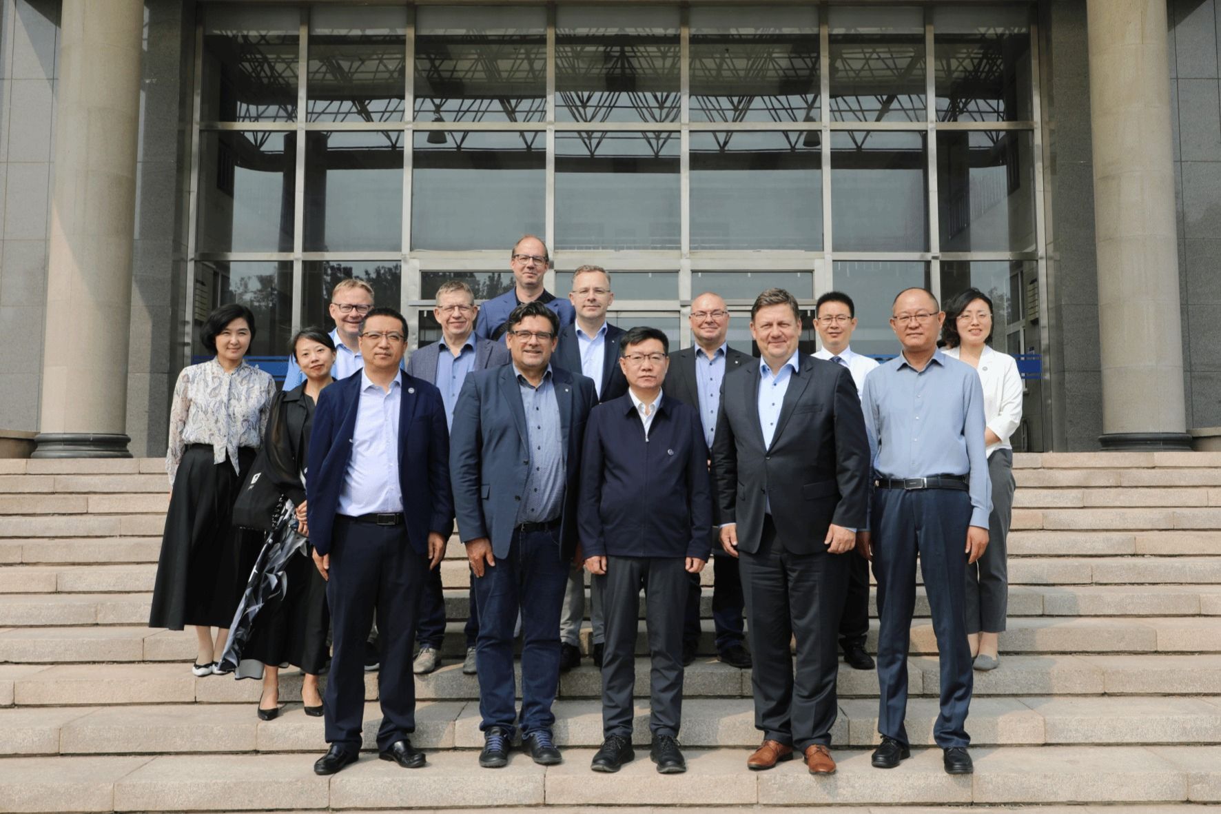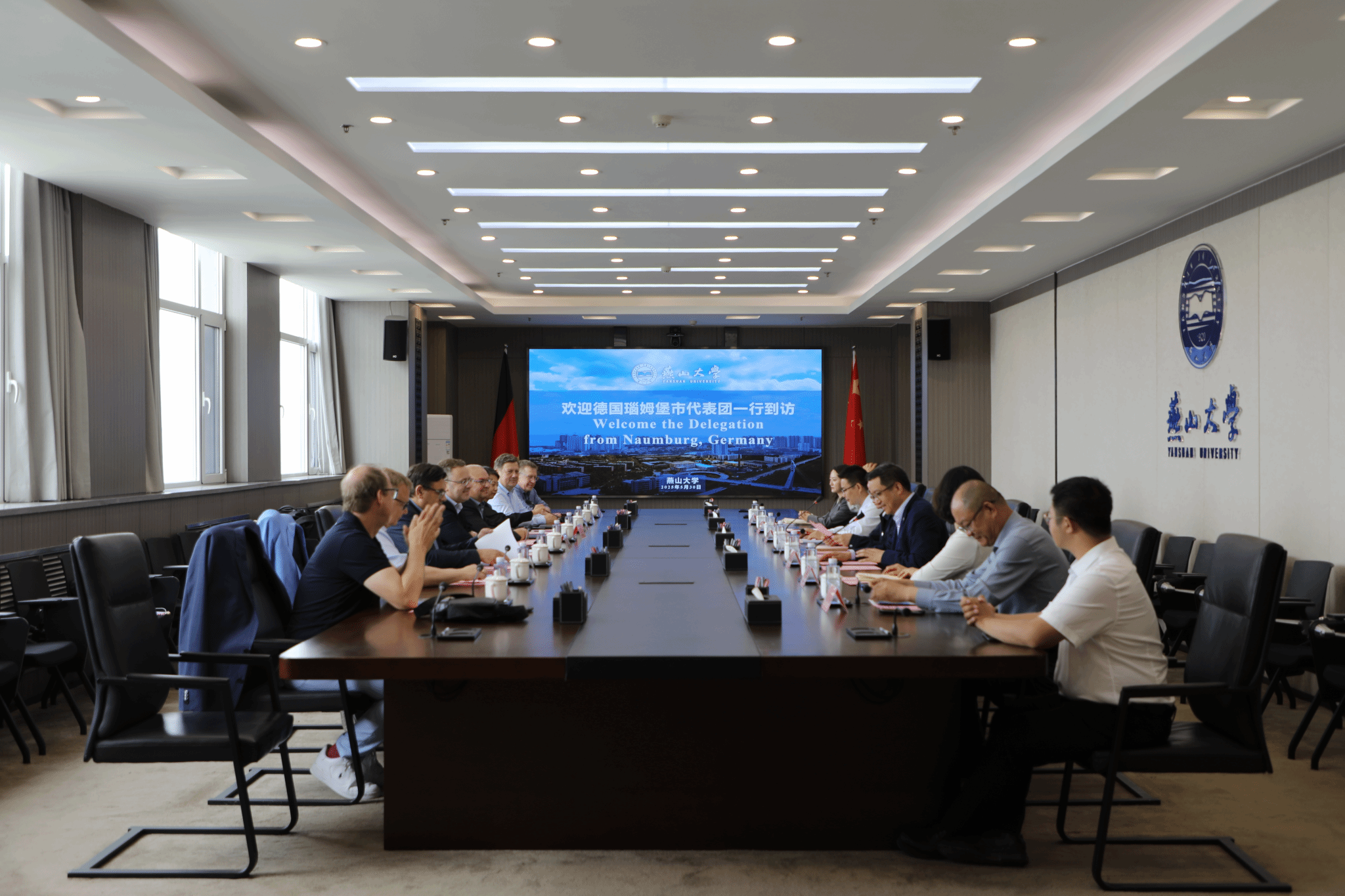 代表团由州议会议员丹尼尔·施图尔姆、瑙姆堡市议会主席约尔格·舒茨、市长阿敏·穆勒及梅泽堡应用科技大学校长马库斯·克拉贝斯等8人组成。秦皇岛市外事商务局四级调研员高凡,外办主任陆栩陪同来访。乌鸦传媒国际合作处处长陆军、副处长朱虹等人出席会议。