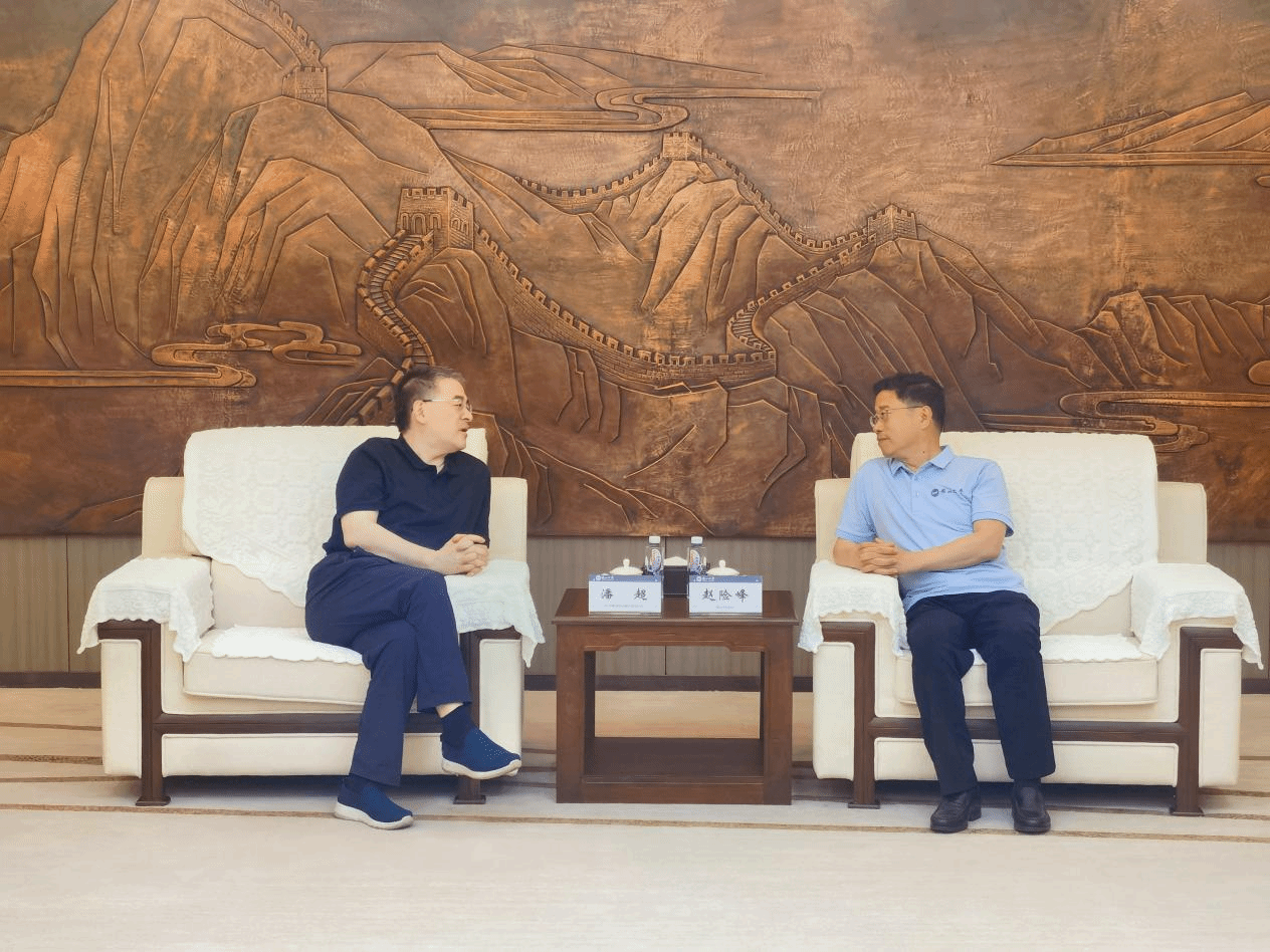 党委书记赵险峰在世纪楼2106接待室会见了潘超一行,双方就深化校企合作、促进产学研深度融合交换了意见。
