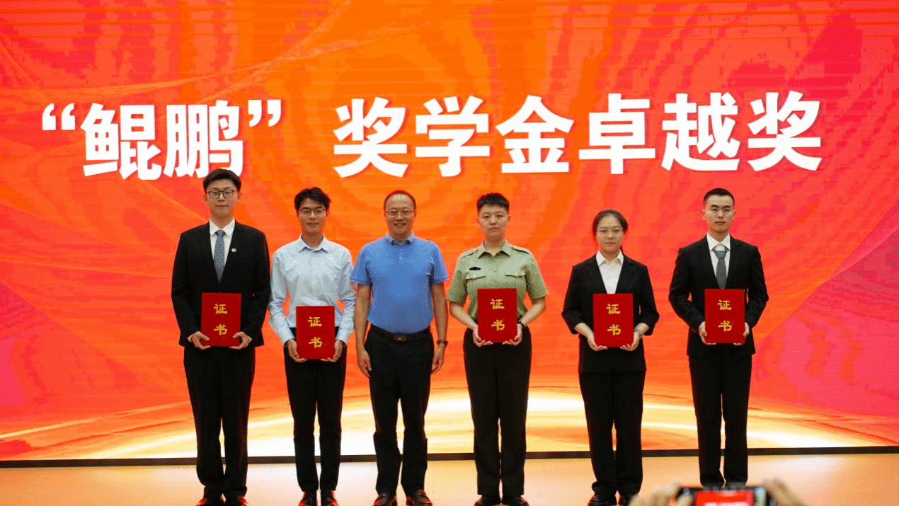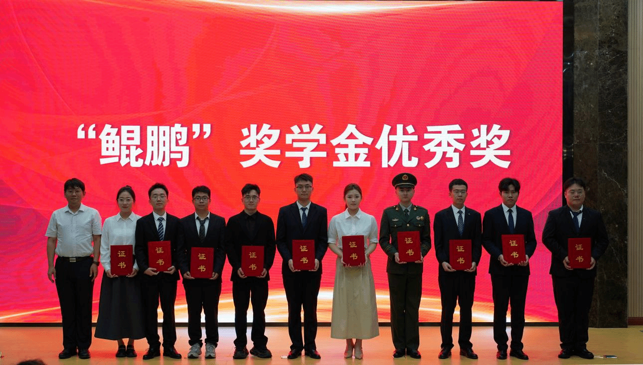 姜宏岩为“鲲鹏”奖学金卓越奖学生颁奖;薛传佳为“鲲鹏”奖学金优秀奖学生颁奖。