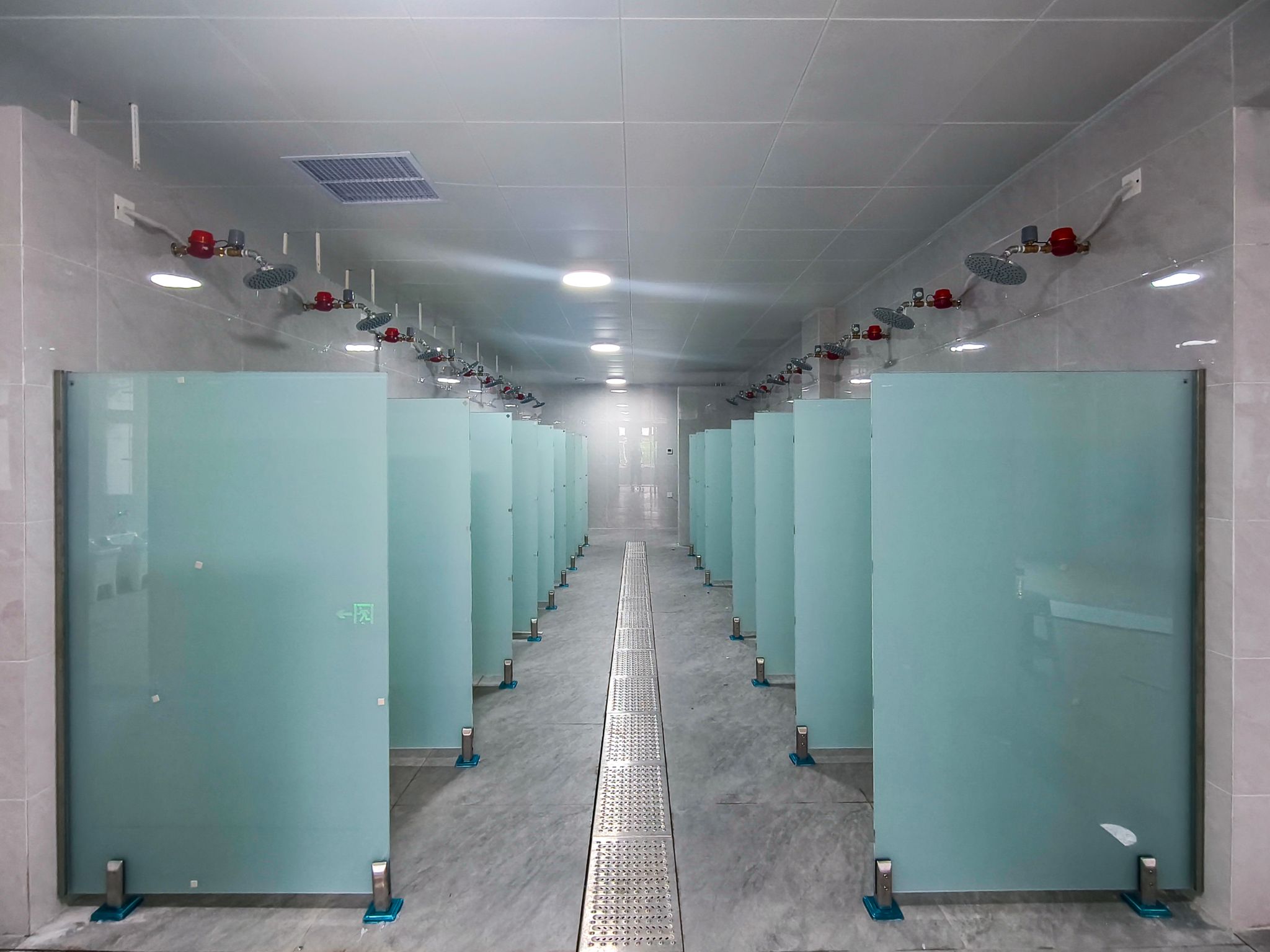 东校区浴池建设项目总面积1210平方米,为二层建筑,内部规划有淋浴区、更衣区、干发区,配置玻璃隔断淋浴间264个,设计日接待洗浴能力可达5千人次。该项目于2025年4月25日正式开工,历时120多天如期完成,将于2025年9月初正式投入运行,为全校师生提供安全、高效、便捷与舒适的洗浴服务。