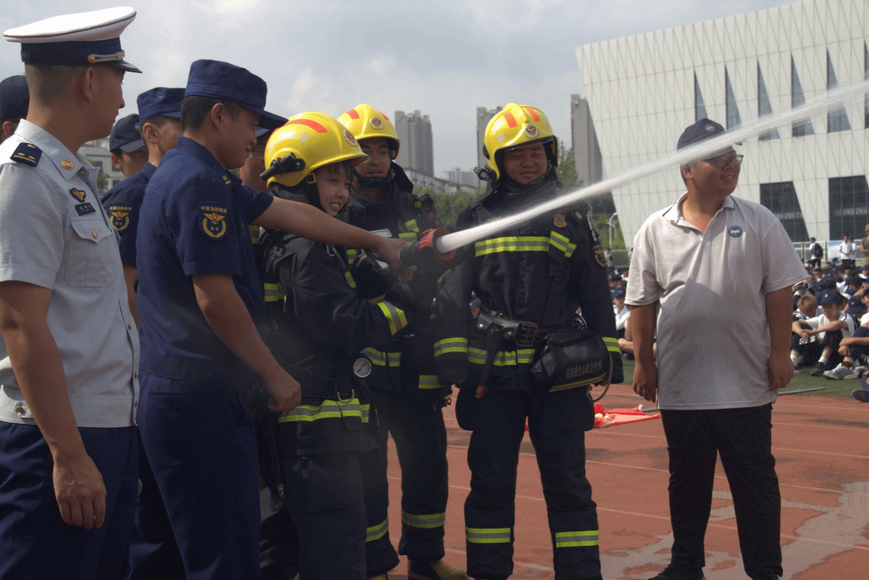消防安全培训环节同样精彩纷呈。来自消防救援支队的专业教官吴帅克重点针对高校学生公寓的消防安全,为新生们系统讲解了防火知识、常见火灾隐患的排查、初起火灾的扑救方法以及火场逃生自救技巧等关键内容,并现场演示消防器材使用方法。理论讲解之后,活动进入了沉浸式体验环节,新生们在消防员的指导下,积极参与消防装备体验,强化消防意识,提升实战技能。新生志愿者穿上厚重的消防战斗服,亲身体验手持水枪模拟灭火的过程,感受消防员工作的艰辛。活动现场还展示了多种消防救援车辆和专业装备,新生们近距离参观了解,并与消防员进行积极互动,现场气氛热烈。本次理论与实践相结合、观摩与体验并重的培训方式,极大地激发了新生们学习消防知识的兴趣,让抽象的安全知识变成了可感可触的实际操作。