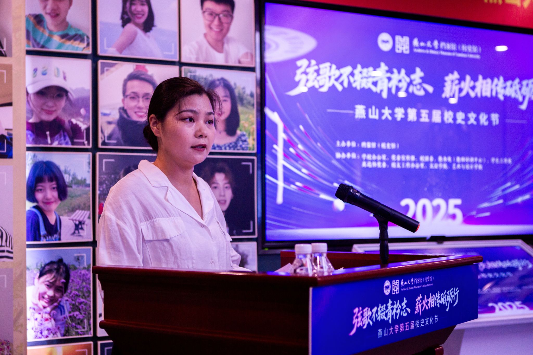 外国语学院辅导员王常奇代表教师讲解员发言,回想入职之初参观校史陈列馆的场景,东重、燕大前辈们艰苦奋斗、为国铸器的动人场景和弦歌不辍、自强不息的精神特质让她深感震撼、倍受鼓舞。她表示,作为一名光荣的校史讲解员和英文宣讲队的指导教师,将自觉承担起学习校史、传播校史、传承校史的神圣职责,让越来越多社会各界、世界各地的朋友们了解燕大历史、读懂燕大底蕴、领略燕大魅力,让百年校史的荣光薪火相传、光耀未来。