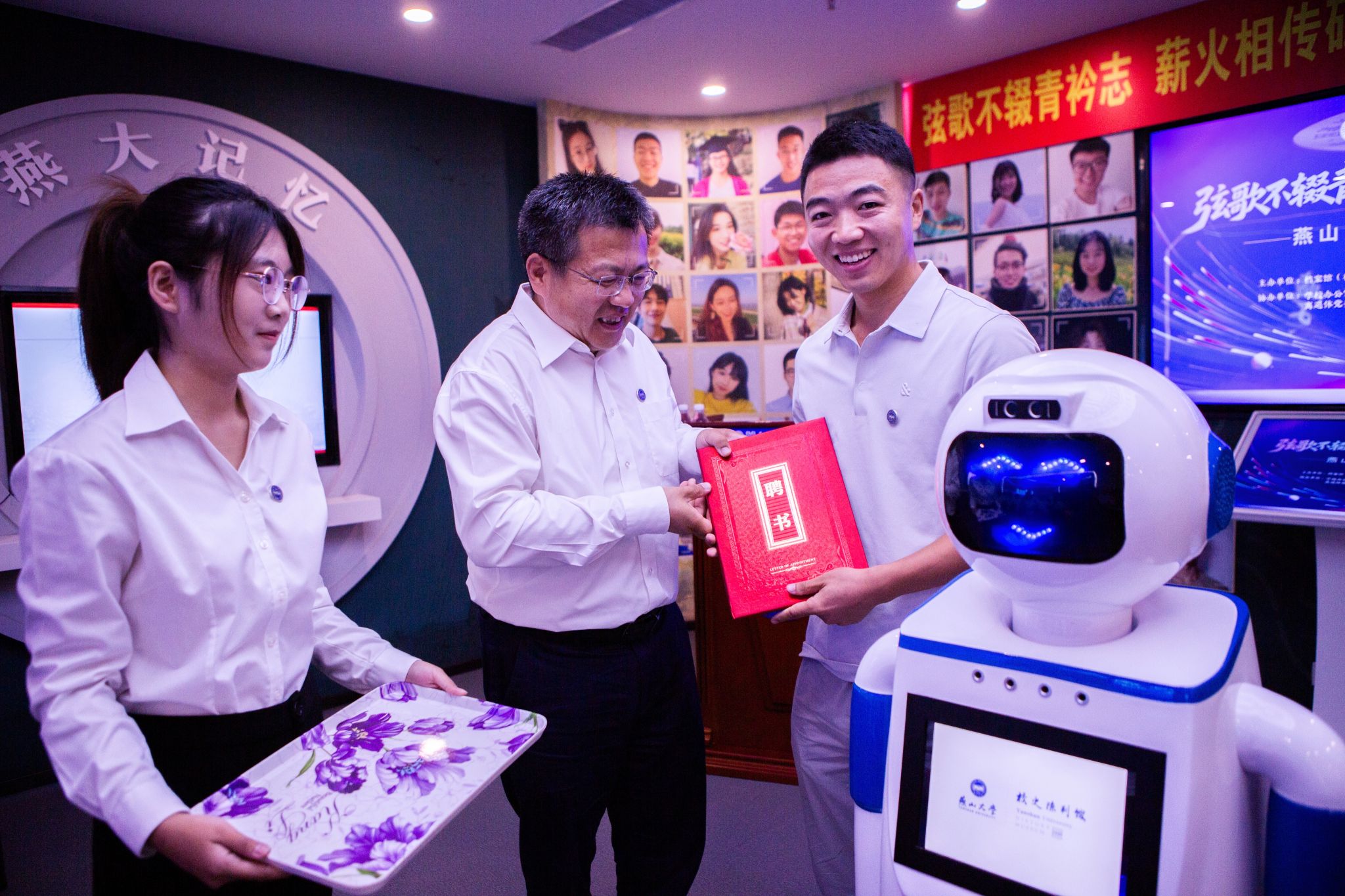 学校拥有一支阵容强大、覆盖全校、师生共建的校史宣讲团,累计300余人加入其中,完成千余场讲解任务,为校史文化的传播与传承贡献了智慧和力量。由电气工程学院华长春教授团队倾力打造,承载着科技温度与校史情怀的智能“新伙伴”——讲解机器人闪亮登场,以科技之力赋能校史宣讲团,让燕大百年校史“活”起来、“动”起来、“亮”起来。
