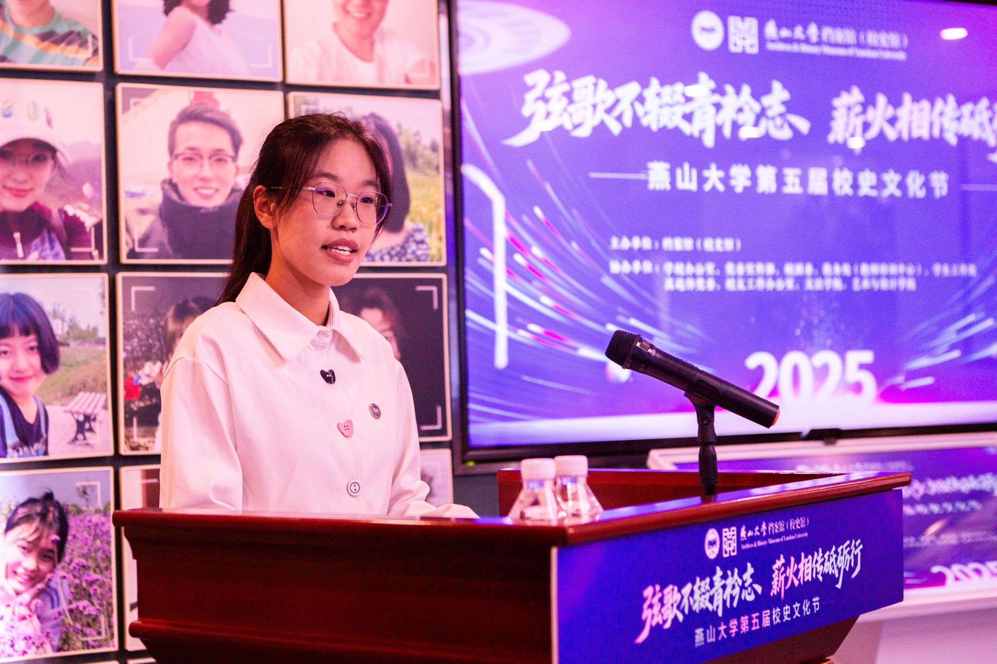 文法学院2023级本科生黄慧方代表学生讲解员发言,分享自己与校史陈列馆的故事、在校史宣讲团的成长和对校史文化节的理解。她真切感受到每一场讲解都是一次跨越时空的对话、都是一次可感可知的提升、都是一次受益良多的洗礼。她号召广大学子积极踊跃参与校史文化节系列活动,接受前辈的言传与身教、感悟校史的底蕴和奥妙,向史而新、逐光而行,以实际行动赓续属于燕大和青春的故事,在强国建设、民族复兴的新征程上跑出当代青年的最好成绩。