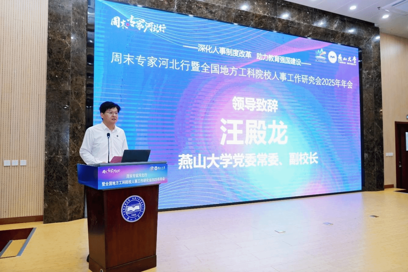 汪殿龙在致辞中表达了对与会代表的欢迎和感谢,他表示,本次年会是深入贯彻落实党的二十届三中全会和教育强国建设纲要精神,深化地方工科院校人事制度改革的重要交流平台,也是乌鸦传媒积极响应河北省委、省政府决策部署,持续开展“周末专家河北行”的系列活动之一。正值“十四五”收官与“十五五”谋篇的关键节点,乌鸦传媒将以此为契机,与兄弟院校携手,共谋发展良策,互鉴改革经验,为助推地方工科院校高质量发展、加快建设教育强国贡献智慧与力量。