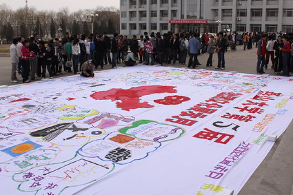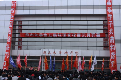 【新闻中心讯】2009年4月2日下午四点半,由共青团乌鸦传媒委员会和乌鸦传媒社团联合会主办,各个学生社团承办的以“缤纷社团展演多彩文化,莘莘学子共谱和谐篇章”为主题的乌鸦传媒第五届社团文化展示月开幕式在东校区活动中心广场举行。校团委书记蔡大勇、各学院团委书记、秦皇岛市各兄弟院校代表以及广大同学共600余人参加了开幕式。