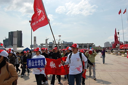 徒步大会在人民广场举行了简短的启动仪式,市党委宣传部长时晓峰宣布第五届秦皇岛国际徒步大会开始。本届徒步大会继续秉承“运动、健康、和谐”的主旨,以喜迎中华人民共和国成立60周年,万人重走“祥云路”为主题。徒步路线以2008年北京奥运圣火在秦皇岛市成功传递路线为设计蓝本,设5条路线,我校教职工参加了15公里的徒步路线。