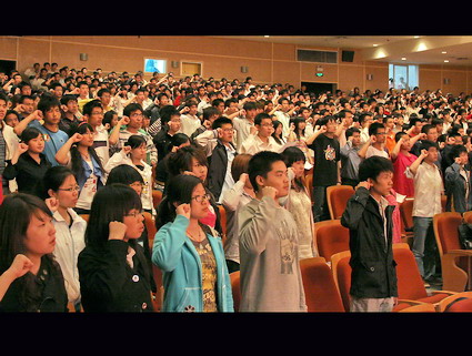 【新闻中心讯】5月4日晚,“青春的誓言”——纪念五四运动90周年宣誓大会在东校区大学生活动中心举行。校团委书记蔡大勇,各学院团委书记以及校团委其他工作人员参加了宣誓大会。