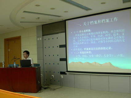 秦皇岛市档案局副局长杨爱志同志作了题为《学习贯彻27号令 做好高校档案工作》的讲座。杨副局长针对讲座主要面向兼职档案员的实际情况,首先介绍了什么是档案和档案工作,然后在此基础上进一步从七方面详细指出应该怎样做好高校档案工作。杨副局长的讲座深入浅出,形象生动,案例丰富,使专兼职档案员受益匪浅。