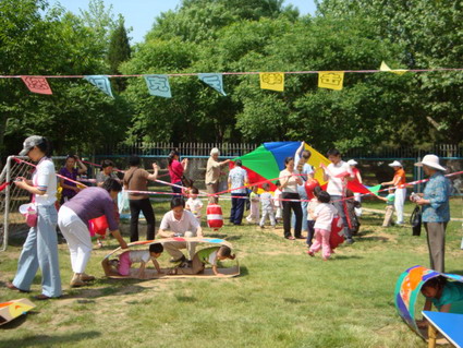 今年的六一,由于受 “手足口病”和甲型H1N1流感病毒的影响,幼儿园没有组织大型的演出,但老师们还是精心做了准备,使得幼儿园内彩旗飘扬,笑语欢歌,成了欢乐的海洋。天真可爱的孩子,满怀期望的家长,热情洋溢的老师和布置一新的幼儿园构成了一道独特的风景。