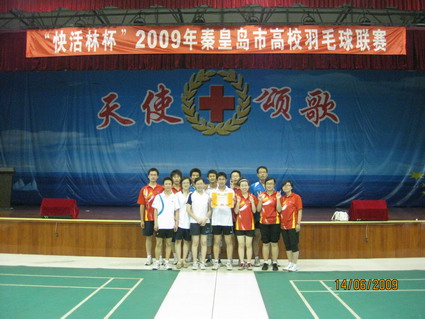 【新闻中心讯】2009年6月7日,我校应中国环境干部管理学院的邀请,参加了“快活林杯”2009年秦皇岛市高校羽毛球联赛。本次活动由秦皇岛高校羽毛球联合会举办,中国环境干部管理学院羽毛球协会承办。我校、东北大学分校、河北科技师范学院、建材学院、中国环境管理干部学院、华北煤炭医学院秦皇岛分院等6所高等院校参加了本次联赛。