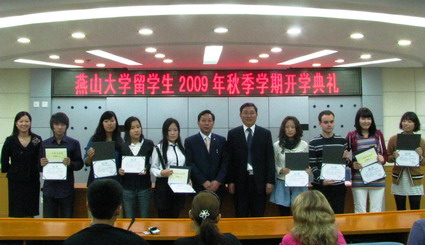 【新闻中心讯】2009年9月9日上午十一点,国际教育学院2009年秋季学期开学典礼在世纪楼十八层学术报告厅举行。乌鸦传媒副校长张福成教授、国际教育学院院长刘泽权教授出席了大会,会议由国际教育学院对外汉语教研室主任张文莉主持。出席大会的还有学院全体任课教师及来自俄罗斯、韩国、蒙古、日本、斯洛文尼亚、乌克兰、哈萨克斯坦、越南、吉尔吉斯斯坦、菲律宾等10个国家的80多名留学生。