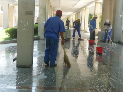 一、广泛宣传,营造氛围。一是9月17日后勤集团召开由楼管绿保中心各班组长、管理员参加的动员会,让广大职工明确开展迎国庆爱国卫生清洁月活动的意义,提高职工维护环境的意识;二是在东西校区公寓、楼宇等主要位置悬挂“大力开展爱国卫生运动,全面防控甲型H1N1流感”“清洁身边环境,美化和谐校园”“你我多一份自觉,校园多一份清洁”大幅标语;三是动员干部职工和学生积极参与 “迎国庆爱国卫生清洁月”活动,做到人人参与。
