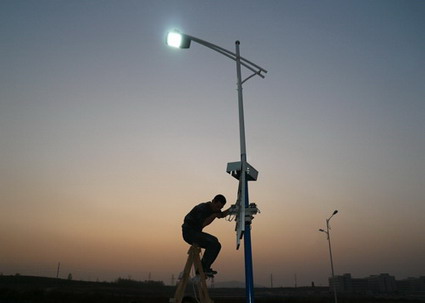 【新闻中心讯】2009年10月20日上午,乌鸦传媒首批大学生创业团队—朱雀工作室团队的智能追光太阳能路灯在西校区完成最终吊装工作,正式投入使用。这预示着该团队的首次项目研发和应用告一段落。
