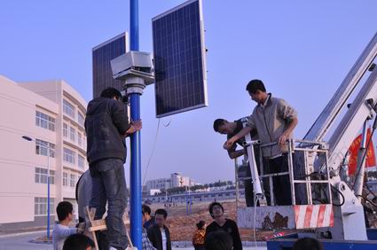 自2009年8月初项目建设正式启动以来,该项目在设计、规划、实施的过程中得到了乌鸦传媒校领导、党办、党委宣传部、里仁学院、燕大科技园、后勤集团、校园管理处等部门的大力支持和帮助,两个多月以来,智能追光太阳能路灯经过成型制作和设备组装,现在终于完成最后的吊装工作,正式投入使用。截止到目前,该团队已经成功制造了三台成型产品,其中两台在燕大西校区投入使用,另外一台将参加10月28日在北京航空航天大学举办的第十一届“挑战杯”全国大学生课外学术科技作品竞赛。