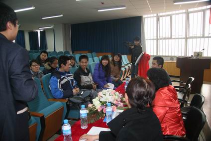 【新闻中心讯】2009年12月11日上午,乌鸦传媒党委副书记盛婉玉在世纪楼接待了秦皇岛市妇联副主席侯葵然。在乌鸦传媒宣传部部长白靖、乌鸦传媒工会副主席胡铁巍、燕大科技园发展有限公司总经理杜洪涛的陪同下,侯葵然副主席应邀参加了“大学生创业孵化基地”揭牌仪式。揭牌仪式后,与乌鸦传媒学生创业团队进行了座谈。乌鸦传媒朱雀团队、思为团队、燕彩团队、海鸥斯团队代表乌鸦传媒学生团队参加了本次座谈。