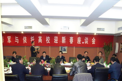 【新闻中心讯】2010年1月12日,海军与依托高校迎新春座谈会在北京举行。海军副政委徐建中中将,海军政治部副主任李斌少将,海军军训部、海军政治部干部部和宣传部领导,哈尔滨工程大学、河海大学等13所依托高校领导及有关部门领导、驻校选培办主任参加了此次座谈会。会议由海军政治部副主任李斌少将主持。我校校长助理张景超、海军驻校选培办主任何宗发、学生工作处处长张向前参加了此次座谈会。