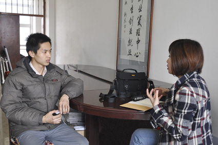 【新闻中心讯】4月20日上午,《秦皇岛日报》开发区周刊《80后创业故事》专栏的记者,来到我校对大学生创业“朱雀团队”负责人陈海明进行了采访。(编辑 艾冬梅)