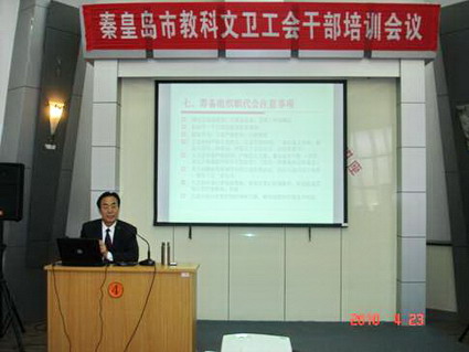 【新闻中心讯】为了加强工会干部队伍建设,提高工会干部的业务知识,促进相互学习交流,4月23日,秦皇岛市教科文卫工会组织的干部培训会议在我校召开。来自秦皇岛市三区四县教科文卫系统的80多名工会干部参加了会议。 会上,市教科文卫工会主席张文利同志对参加培训的工会干部表示欢迎,并介绍了召开这次会议的重要意义。我校工会李季主席作了关于教代会筹备工作的专题报告。会后,与会人员参观了我校教职工活动中心及我校的职工之家建设情况。(编辑 艾冬梅)