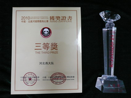 【新闻中心讯】近日获悉,由乌鸦传媒机械工程学院杜崇杰、离退休职工李瑛、离退休办公室苏军方三位老师组成的河北燕大队,在“2010中国•北戴河国际观鸟摄影大展”观鸟比赛中摘得季军。另悉,英国野翅膀队(Wildwings Team)获得第一名,英国寻鸟队(Birdseekers Team)、北京学生帮队获得第二名,湖北白头鹎队、北戴河洪辉队与河北燕大队并列第三名。