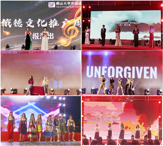 5月28日,在东校区灯光球场举行了文化周闭幕式及汇报演出。演出节目精彩纷呈,德语、俄语专业学生以语言技能为基础带来了包括舞蹈、独唱、合唱、朗诵、趣味互动等13个表演节目。一首动听悦耳的俄语歌曲《Команда》拉开演出的序幕,德语歌曲小合唱《Fürdie Liebe》饱含深情。节目精彩纷呈,非凡闪耀,给师生们带了一场异域国别的视听盛宴,《俄德服装秀》将现场气氛推向了高潮,青春活力,活泼可爱,展示异域风情的同时也展示了学生们的青春风采。