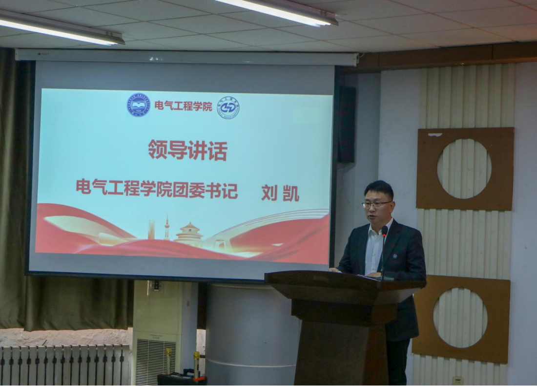 朱坤代表电气工程学院党委作题为《青春正当燃,逐梦新时代》的讲话。他充分肯定了学院学生会、研究生会等学生组织在弘扬爱党爱国精神、维护学生发展权益、繁荣校园文化发展方面作出的突出贡献。并勉励新时代电气青年要志存高远,脚踏实地,在实现大我中成就小我;广大团学骨干要勇担时代使命,扎实履职尽责,服务青年发展;学生组织要紧跟时代要求,纵深推进改革,引领同学成长。