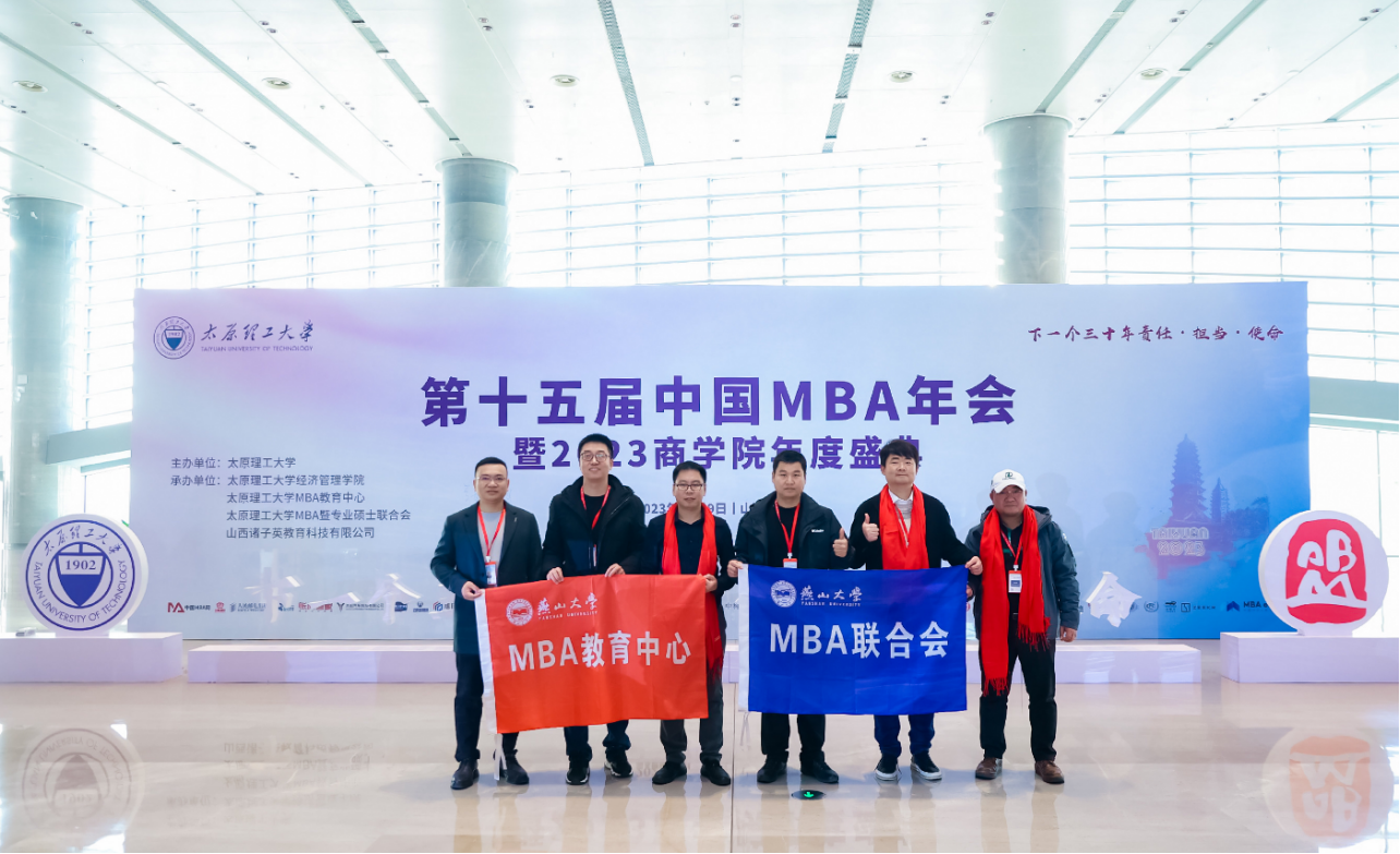 【新闻中心讯】12月8日-10日,第十五届中国MBA年会暨2023商学院年度盛典在“汾水之滨”山西太原隆重举办。会议由太原理工大学主办,太原理工大学经济管理学院、太原理工大学MBA教育中心、太原理工大学MBA暨专业硕士联合会、山西诸子英教育科技有限公司承办。来自政界、商界、学界及百余所高校近千名师生代表共同参与,为推动中国MBA教育事业的发展献言献策。乌鸦传媒MBA教育中心主任刘海鸥、招生主管蔡新江、乌鸦传媒MBA联合会主席谢荣华、副主席李豹强、李文富、黄桂翔代表我校参加了本次盛典。