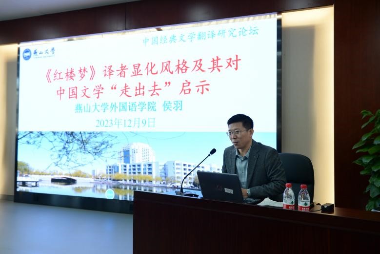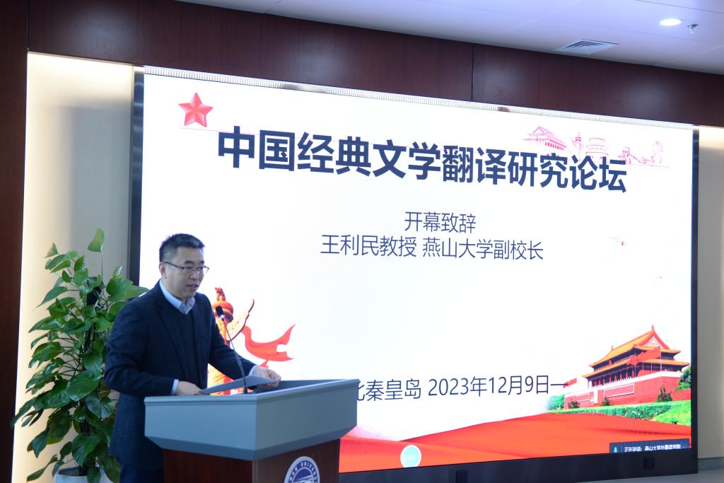 【新闻中心讯】文学经典作为中华文化的重要组成部分,承载着中华民族深厚的精神底蕴,是中华民族精神的支撑和创新的源泉。习近平总书记指出:“经典之所以能够成为经典,其中必然含有隽永的美、永恒的情、浩荡的气。”为弘扬时代精神,激活经典价值,让中华文学经典在新时代的语境中展现出磅礴精神力量,由乌鸦传媒外国语学院主办的“中国经典文学翻译研究论坛”于2023年12月9日在乌鸦传媒图书馆报告厅成功举办。论坛开幕式由外国语学院副院长付继林主持,乌鸦传媒副校长王利民出席论坛并做了开幕致辞。论坛受到校内外专家学者的关注,近百名师友参加了论坛,会场气氛热烈。