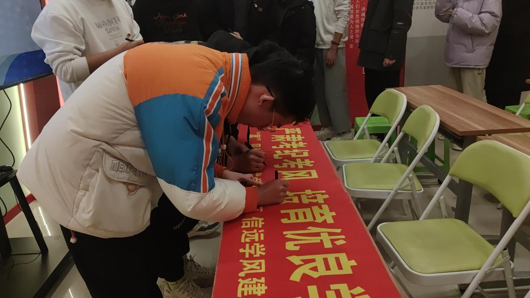最后,在考试周即将来临之际,学院依托一站式社区建设,在学生公寓开展了诚信考试周签名活动,号召同学们认真复习,全力备考,用最好的成绩,以实际行动为建设诚信校园、文明校园贡献力量。(编辑 高慧渊)