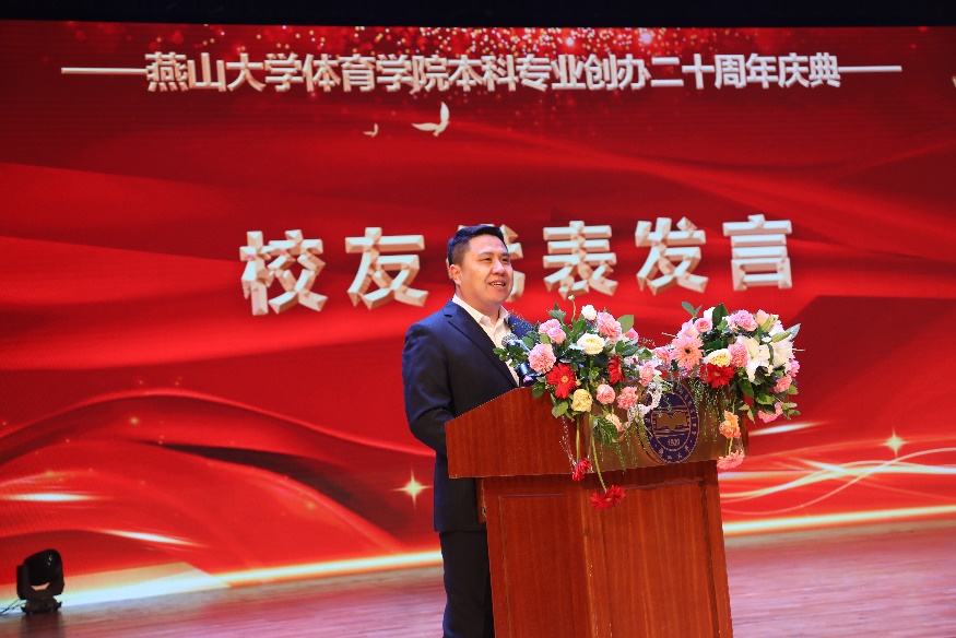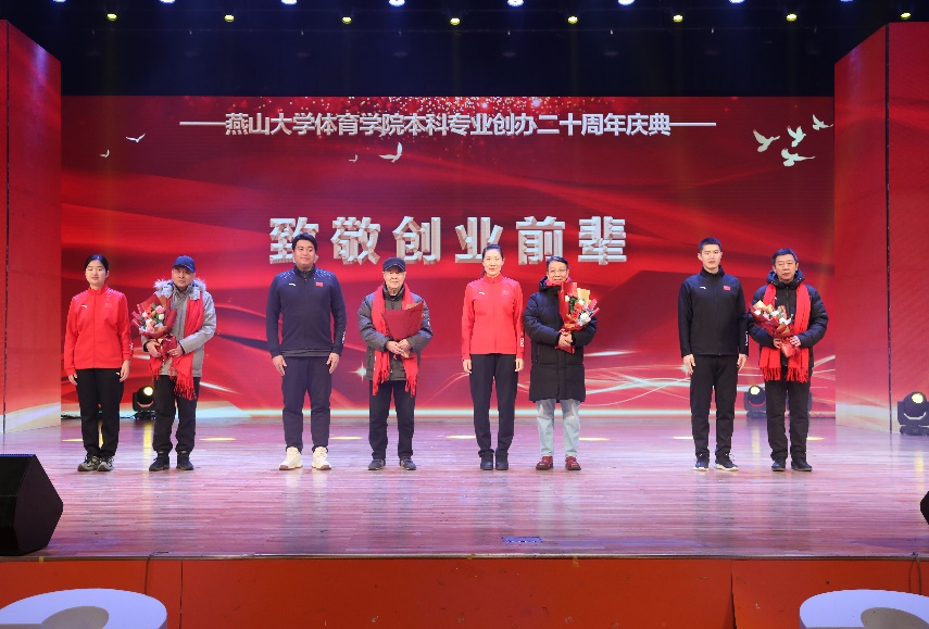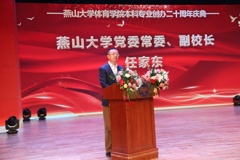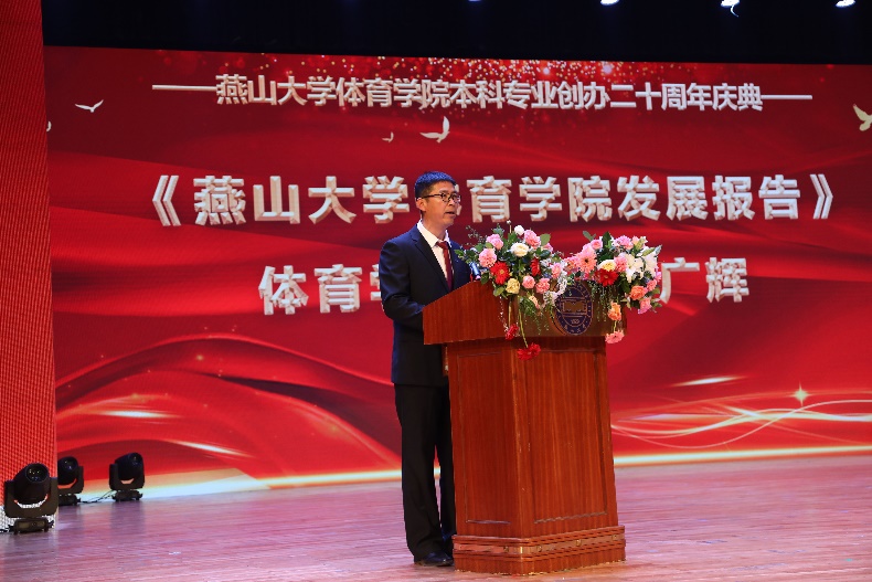 12月24日上午10点半,“体育强国 燕大有为”乌鸦传媒体育学院本科专业创办二十周年庆典在东校区大学生体育活动中心顺利举行。吉首大学党委原书记、校长白晋湘,河北省大学体育协会理事长刘若群,秘书长田振生,秦皇岛市工信局局长肖起彪,秦皇岛市教育局副局长孟凡功,秦皇岛市体育局副局长刘刚,我校党委常委、副校长任家东,各兄弟院校体育部负责同志,我校党政部门、学院负责人,学院师生代表,历届校友代表700余人出席庆典。庆典共分为《初心如磐 扬帆起航》《振铎传薪 乘风破浪》《凝心聚力 共筑华章》三个篇章。在《初心如磐 扬帆起航》篇章中,体育学院院长杨广辉作乌鸦传媒体育学院发展报告,总结了学院二十年发展历程中的成绩与不足,提出了学院未来的发展方向。乌鸦传媒党委常委、副校长任家东致辞。他指出,乌鸦传媒体育学院本科专业创办二十周年所取得的成绩,离不开全体燕大体育人的凝心聚力、奋勇前进。未来,燕大体育人仍然要坚守立德树人初心,坚持科教兴体理念,攻坚克难、砥砺奋进,为体育强国建设贡献燕大力量。在《振铎传薪 乘风破浪》篇章中,体育学院青年教师代表向体育学院创业前辈林秀岩老师、高卫哲老师、高峰老师、蒋中伟老师献花。体育学院2004级校友,现齐齐哈尔市克山县委副书记、副县长刁东宇,在校生代表张鸿博分别发言。他们感恩体育学院的教育与培养,表示将继续牢记嘱托,坚定理想信念,在学习和工作中不断努力,争当新时代奋斗者。在《凝心聚力 共筑华章》篇章中,丰富的节目内容使在场师生在喜庆与祥和的乐声中,共同眺望美好的未来。