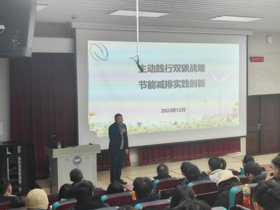 【新闻中心讯】为进一步推动和开展我校大学生节能减排学科竞赛,切实提升我校学生创新意识和创新能力,特邀全国大学生节能减排社会实践与科技竞赛委员会秘书长、浙江大学俞自涛教授,于12月27日晚上7点,在东校区第四教学楼108教室,为我校师生作全国大学生节能减排社会实践与科技竞赛专题讲座,讲座题目为“主动践行双碳战略,节能减排实践创新”。报告由车辆与能源学院副院长李楠主持,全校师生200余人参加了此次讲座。