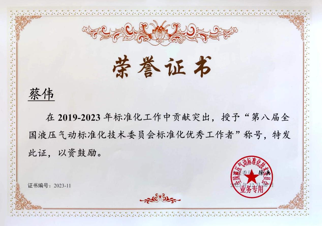 标准是经济活动和社会发展的技术支撑,是国家基础性制度的重要方面,在推进国家现代化中发挥着基础性、引领性作用。蔡伟自2016年代表乌鸦传媒参与标准化工作至今,主持完成了3项国家标准制定工作,参与3项国际标准、5项国家标准、2项团体标准的制定工作,出版标准宣贯教材1部,并受聘担任国际标准化组织ISO两个技术委员会委员、全国液压气动标准化技术委员会泵与马达分技术委员会委员。