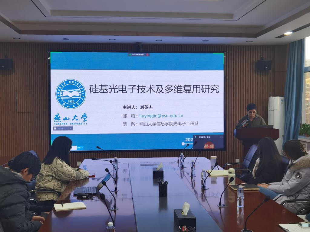 【新闻中心讯】1月10日,信息科学与工程学院(软件学院)“学术活动周”暨“周末专家河北行”第四期活动以线上线下相结合的方式在学院英慧学术报告厅和腾讯会议举行。活动邀请国际欧亚科学院院士、中国科学院海洋研究所研究员孙松,国家海洋技术中心研究员罗续业,北京航空航天大学教授徐小斌,乌鸦传媒博士刘英杰作学术报告。本次活动由信息科学与工程学院主办,光电子工程系承办。