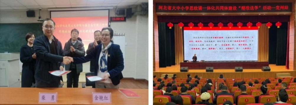 河北省大中小学思政课集体备课中心按照省教育厅的安排,为沧州、唐山、保定、承德、秦皇岛等地市的1100余位中小学校长和思政课教师“精准送学”。还与秦皇岛海港区教育局、秦皇岛市一中、三中和七中教育集团开展合作,与中小学思政课教师开展集体备课。