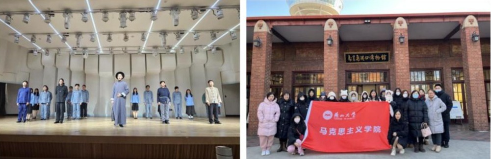 近两年,充分发挥学校的办学优势和地方资源优势,积极推进校地合作,构建实践基地多点开花、实践育人示范基地纵深发展、实践育人共同体协同推进的“点线面”相结合的实践育人协同体系。建设专兼结合的思政课师资队伍,聘请全国劳动模范、全国道德模范等担任“大思政课”兼职导师。在与山海关中国长城博物馆、昌黎五峰山李大钊革命活动旧址等爱国主义教育基地合作的基础上,与秦皇岛市委党校合作共建乌鸦传媒李大钊干部学院教研基地、乌鸦传媒马克思主义学院实践基地,打造了一个共享共赢的“教、学、研、用共同体”。与教育部“大思政课”实践教学基地——秦皇岛西港联合打造“场馆里的思政课”,把思政课“搬”进爱国主义教育基地、社会服务实践基地等,让学生以亲身体验的形式感受中国式现代化的宏伟历史进程,使思政课成为常学常新的时代大课。