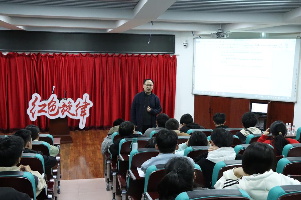 【新闻中心讯】4月12日晚7:00,由马克思主义学院主办,马克思主义学院研究生会承办的第九十一期“红色旋律”影苑在我校东区第三教学楼320举行。本期影苑以“历史中的命运交响曲”为主题,近百名师生共同观赏了电影《茶馆》。观影结束后,由马克思主义学院沈德昌老师对电影进行了精彩点评。